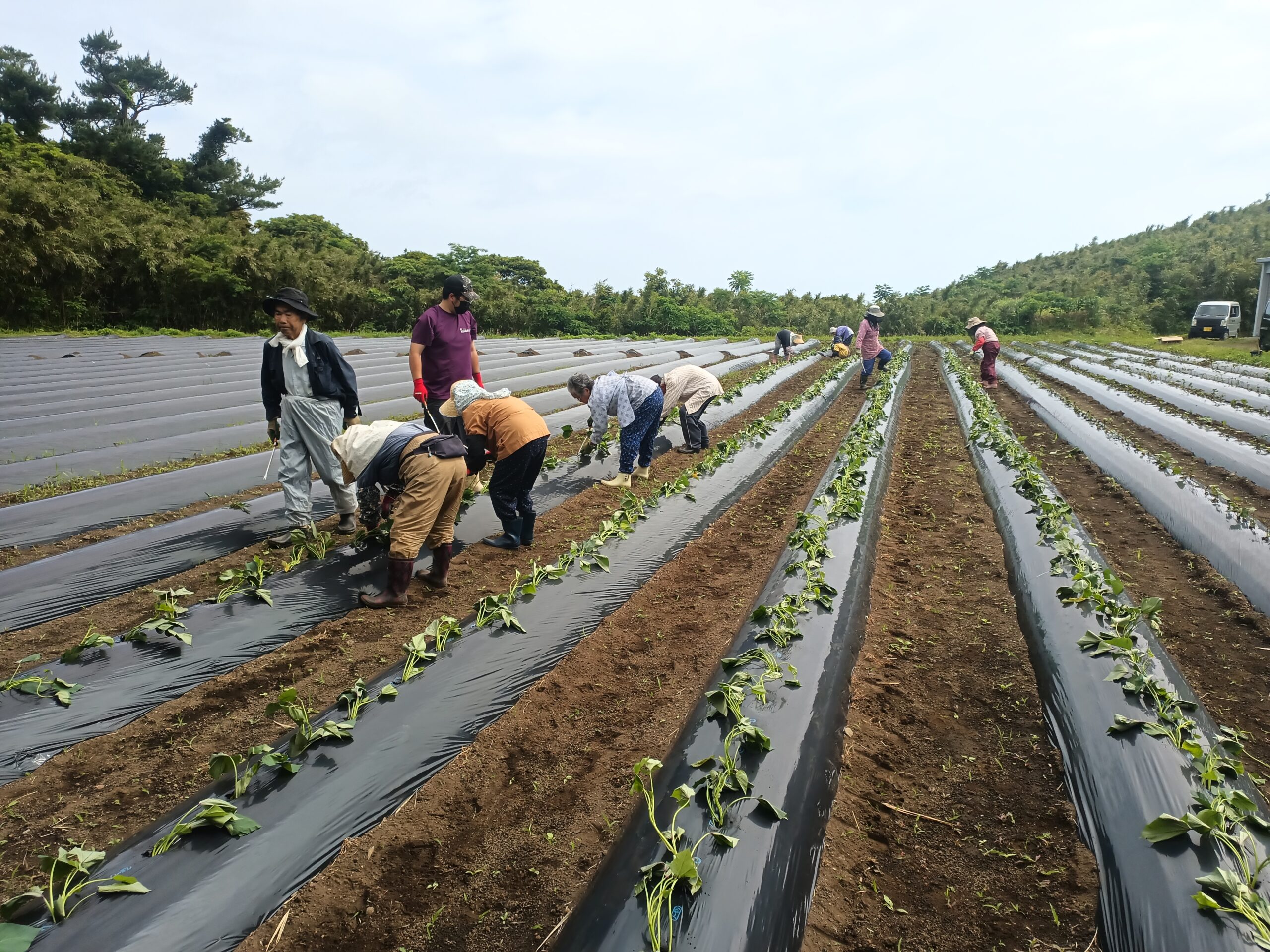 5月に突入してから、晴れ間が少なくて悪天候の中、大里老人会の皆様の協力のもと植え付けることができました。